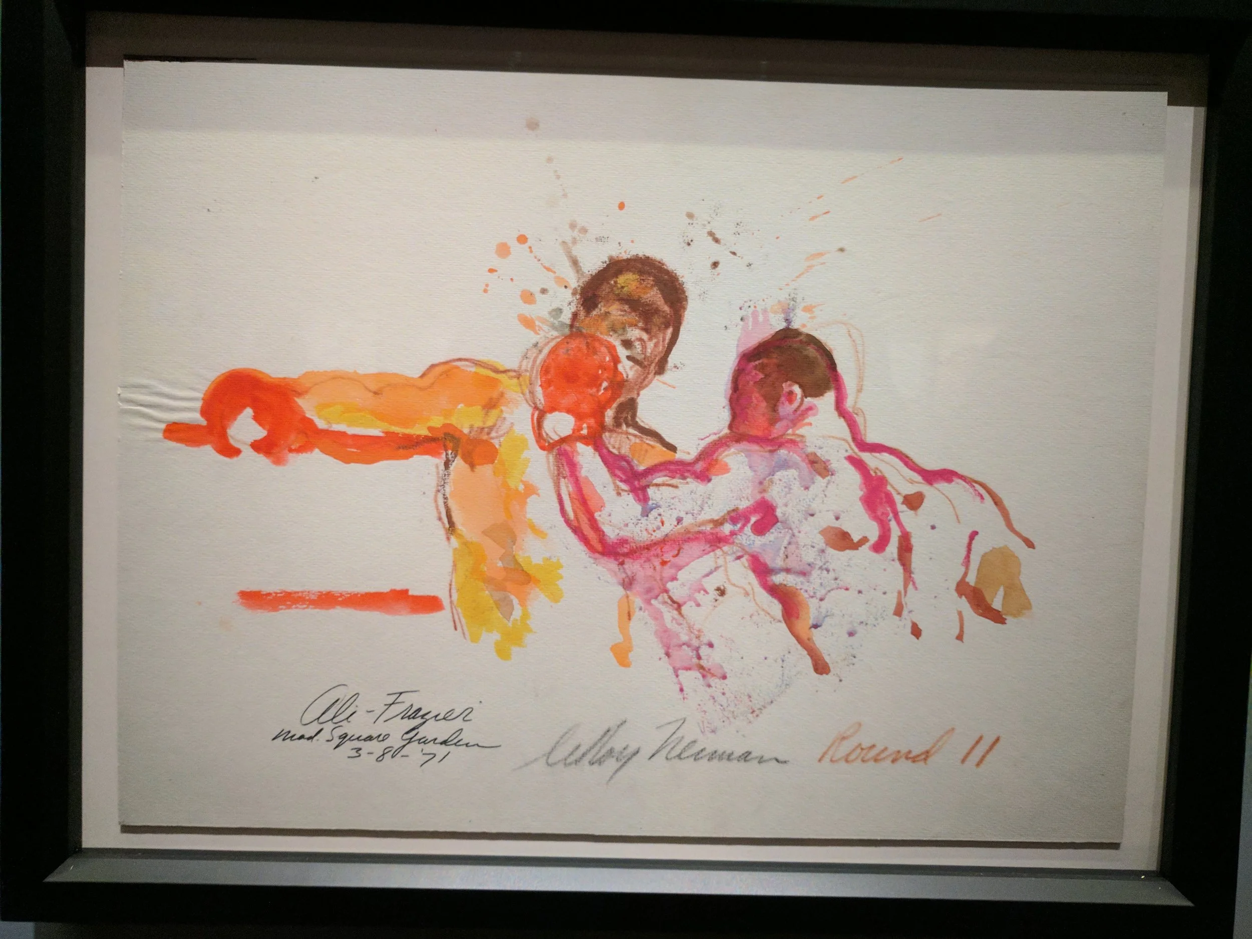 Currently showing through March 26th, at the New York Historical Society, located on 77th street and Central Park West, "Muhammad Ali, Leroy Neiman and the Art of Boxing.” This exhibit showcases the life of Ali through paintings and quick sketches by Leroy Neiman in Ali’s more historically significant moments. Also on display, a robe worn by Ali, as well as gloves Ali wore in his fight with Ernie Shavers*, in 1977. *A grueling 15 round decision victory for Ali.